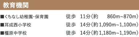 周辺には公園や教育施設が揃い、お子様がのびのびと育つ環境が整っています。