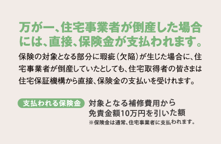 「住宅瑕疵担保履行法」により、瑕疵の補修が確実に行なえるように「保険」か「供託」により