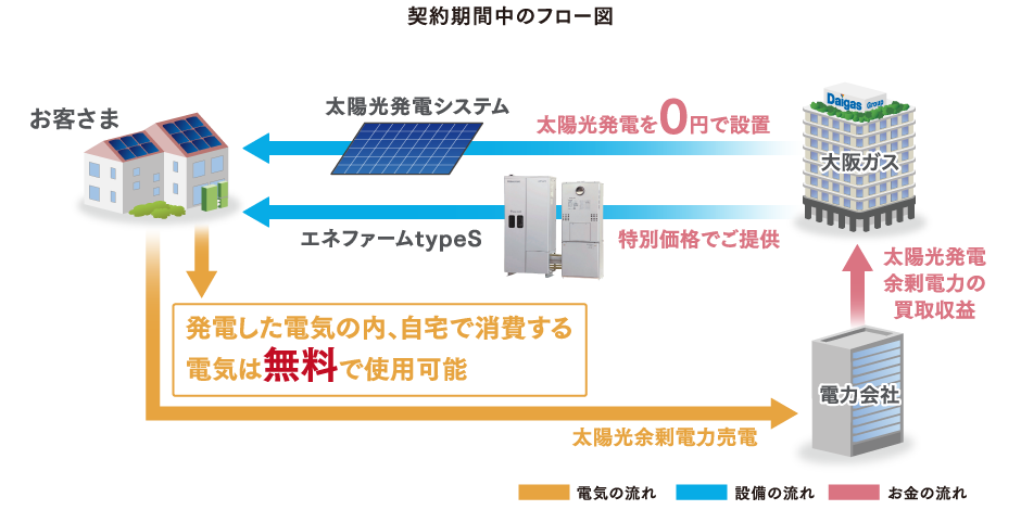 発電した電気は無料でご利用いただけます。ご契約終了後は、お客さまに無償譲渡されます。