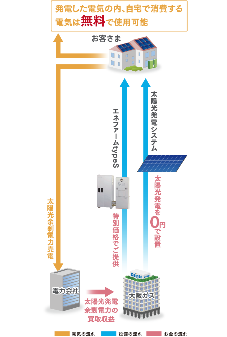 エネファームの導入費用だけで、太陽光発電システムを無償でご提供。
